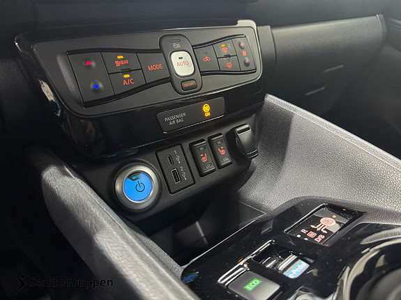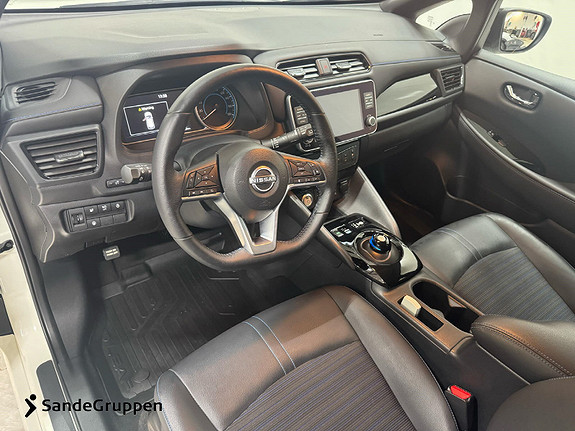 Bilen er i en to-tonet farge som fremhever utseende. Leaf er kjent for å være norges mest solgte elbil og er en pioner i elbilmarkedet sisen 2011! Driftsikker og pålitelig er det som går igjen på leaf. Romslig innvendig både i kupeen og i bagasjerommet.